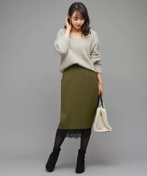 カーキスカートコーデ55選 秋冬から春夏まで使える おしゃれ Lovely